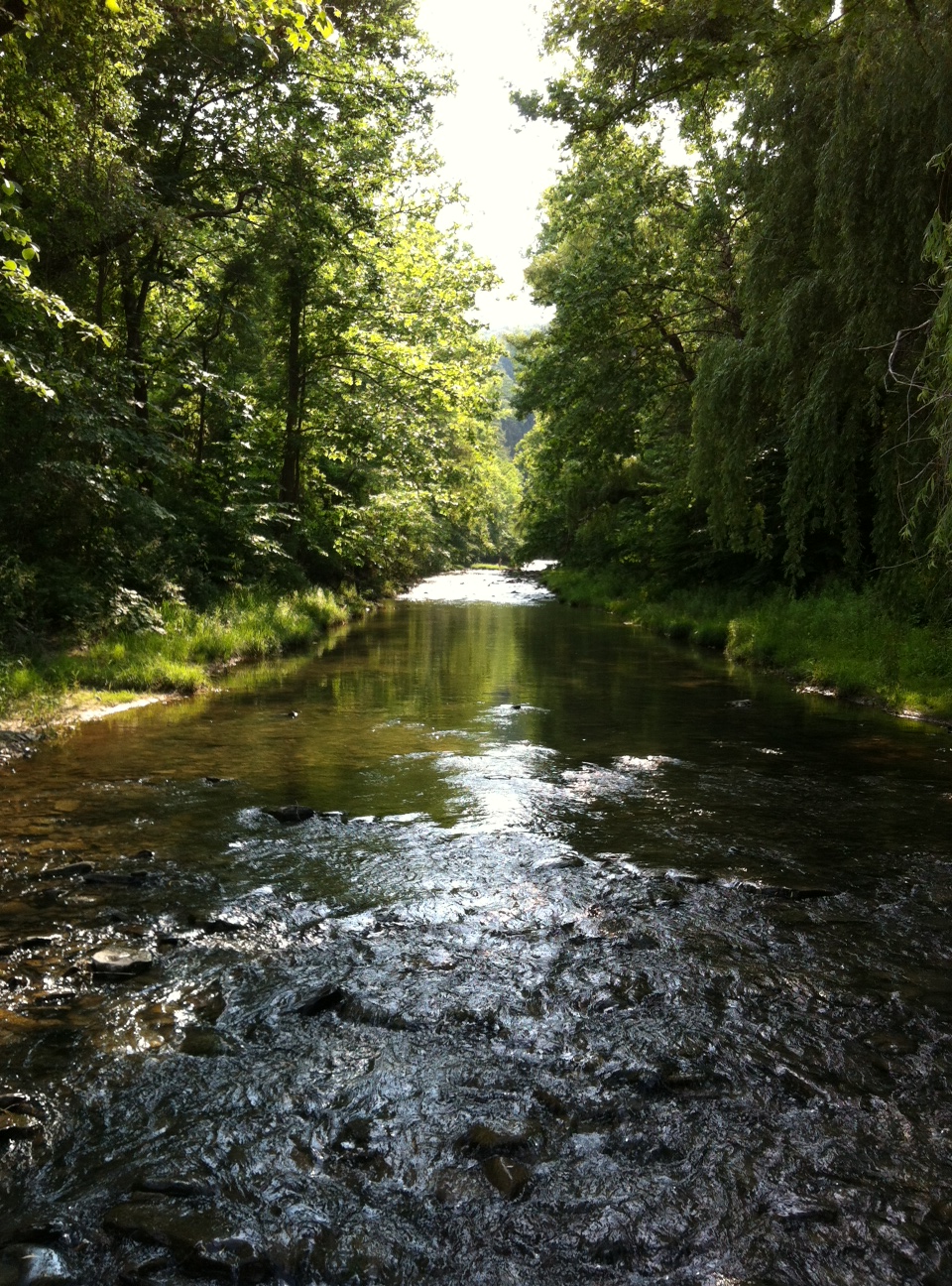 Once again, we decided to roll out early the next morning as the day was to be another hot one. We ate breakfast in the lodge and headed down the hill. Knowing what was waiting for us, we took our time and carefully navigated the trick spots in our descent. When we reached Highway 7, we headed north. Highway 7 is also known for its scenic beauty and neither of us had ridden it on our bikes. We stopped to gas up in Russellville, Arkansas and headed on up 7. It really was a great ride with gentle curves, a leafy canopy and tremendous views. There was very little traffic, just the Sunday morning church goers and other bikers. We pulled in at a scenic overlook where we met a group of riders going to either Greer’s or Peel’s Ferry, I can’t remember which. They told us about the ferry that takes you from Arkansas into southern Missouri. They invited us, but we told them we were at the end of a long ride and were headed to Fayetteville.