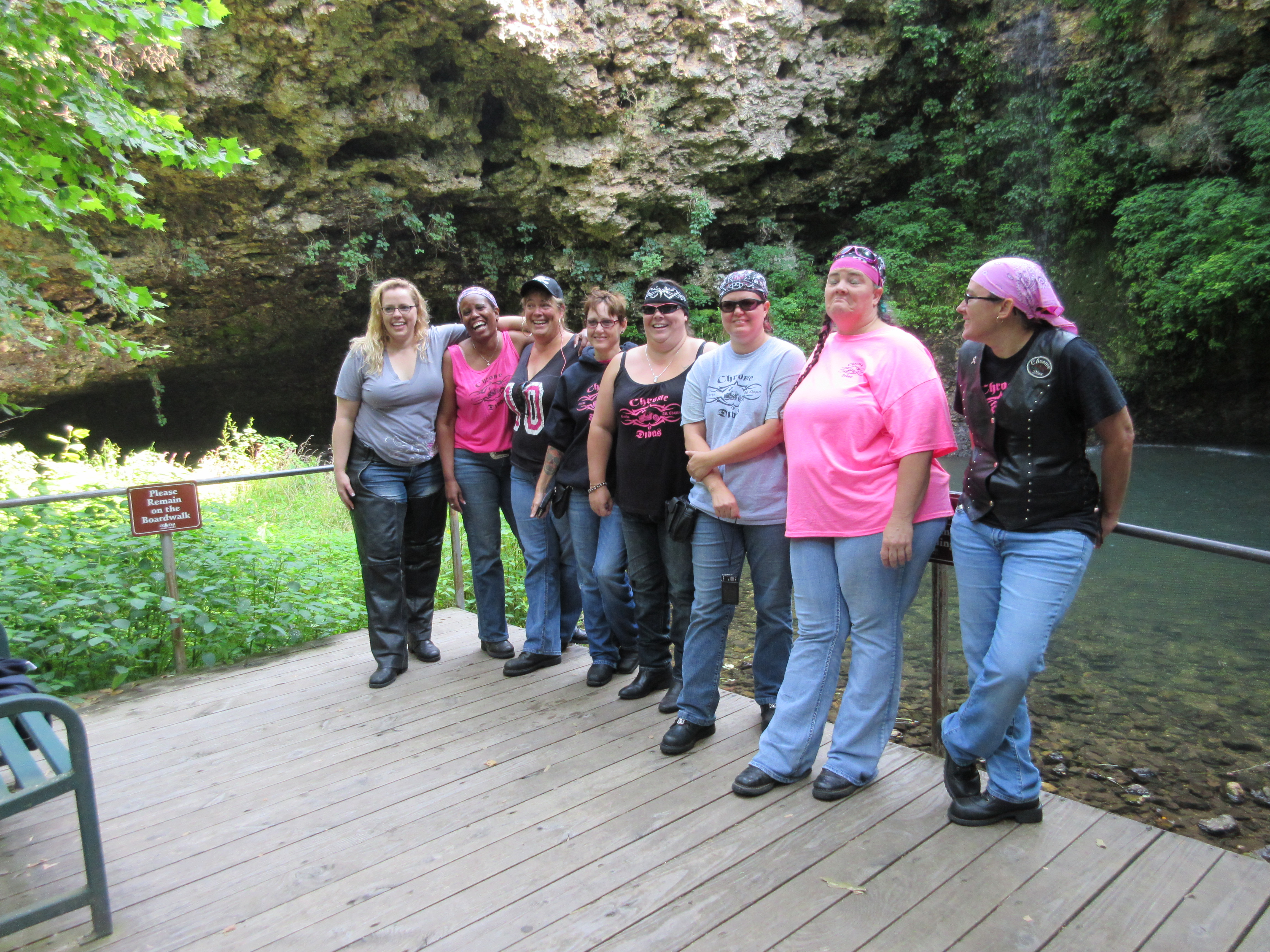 Not too far down the road, we pulled over, got off the bikes, hydrated and did a little stretching. It had been a long day and we were ready to get there, but we were pooped. It was good to stop, take a breather and perk up. Little did we know what a good idea that was, but we shortly found out. As we headed up the mountain to Petit Jean State Park, there was a surprise waiting for us–a tight, u-turn like curve and another that was deceptively tight. “Crap!,” I thought entering it but managed to navigate it. Needless to say, we were a bit frazzled when we pulled into Mather Lodge parking lot.