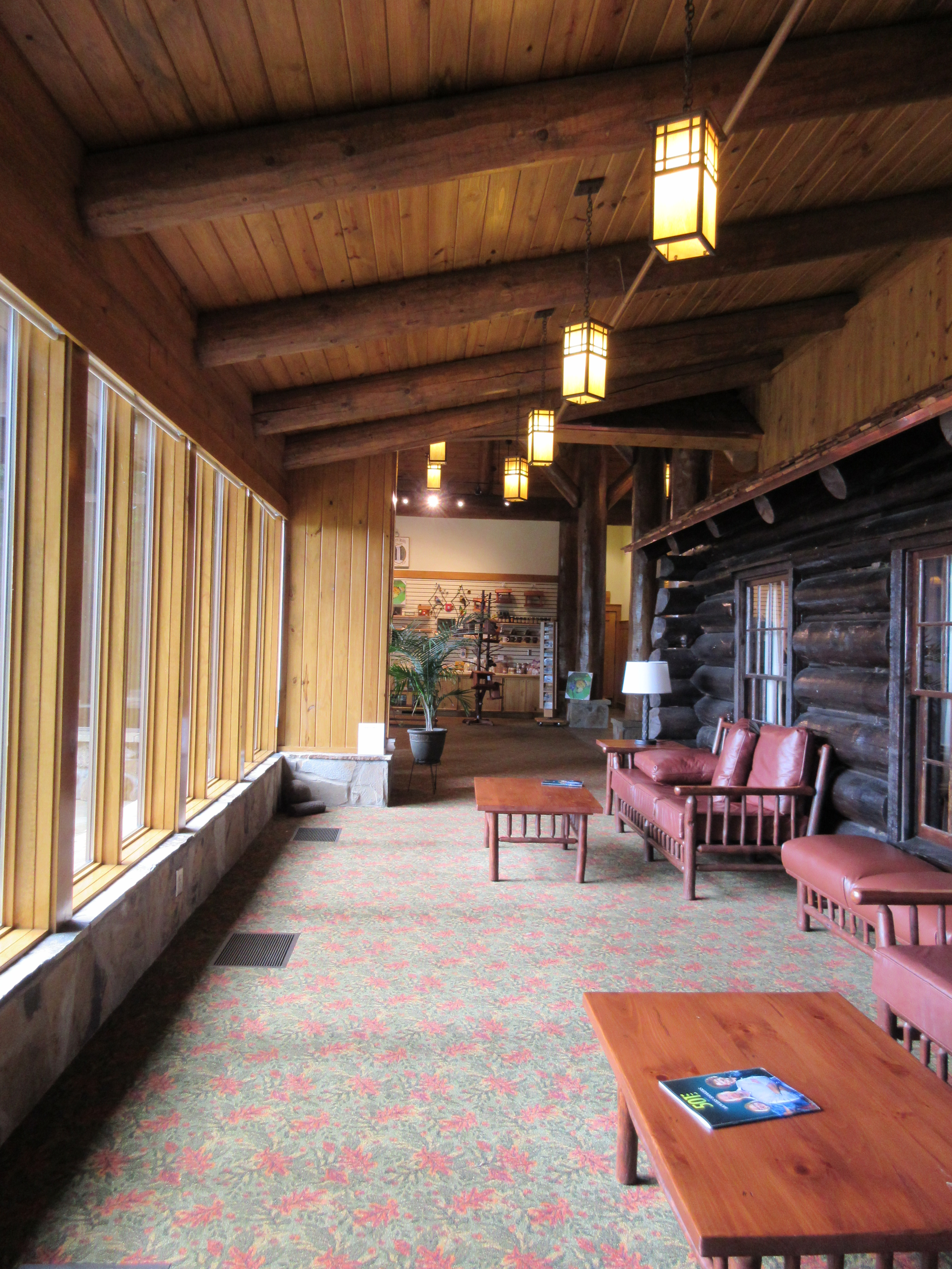 By that time, it was getting to be late afternoon, so we started to think about getting to our resting place for the evening. All in all, I’d say we spent about 3 hours up there marveling over the breathtaking views, enjoying each other’s company, and trying to capture what we saw. I’m not certain that our photos do it justice. [One note for riders, some of the vistas are gravel and there is no indication which is which. In addition there was a lot of loose gravel at the entrance to, and in some of the paved vistas/overlooks.] The Byway runs through Queen Wilhelmina State Park, which has a lodge that is closed for renovation. It has a restaurant, and what are supposed to be vastly improved rooms, once the work is completed.