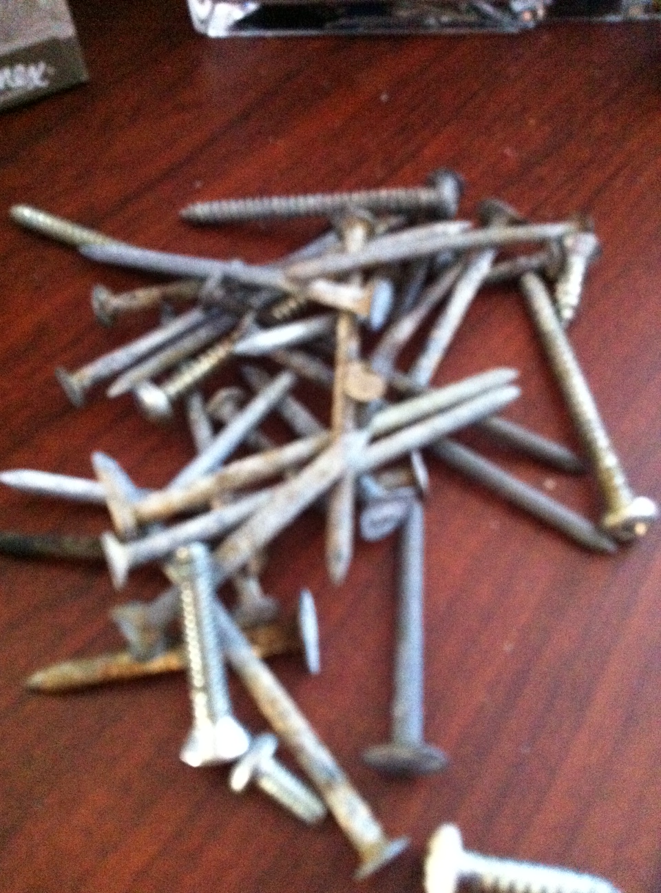 After a healthy cry in the parking lot, I headed home. It’s a beautiful day today. It’s in the 60’s and sunny, after weeks of grey skies and winter weather. This would have been a great day to take Bea (the blessed Harley) out, but barring that I could at least give her a start and let her run for a while. So that’s what I did. While she idled, I took advantage of the mild day to clean the crud from between planks on the deck. It wasn’t long before I discovered a major source of the problem.